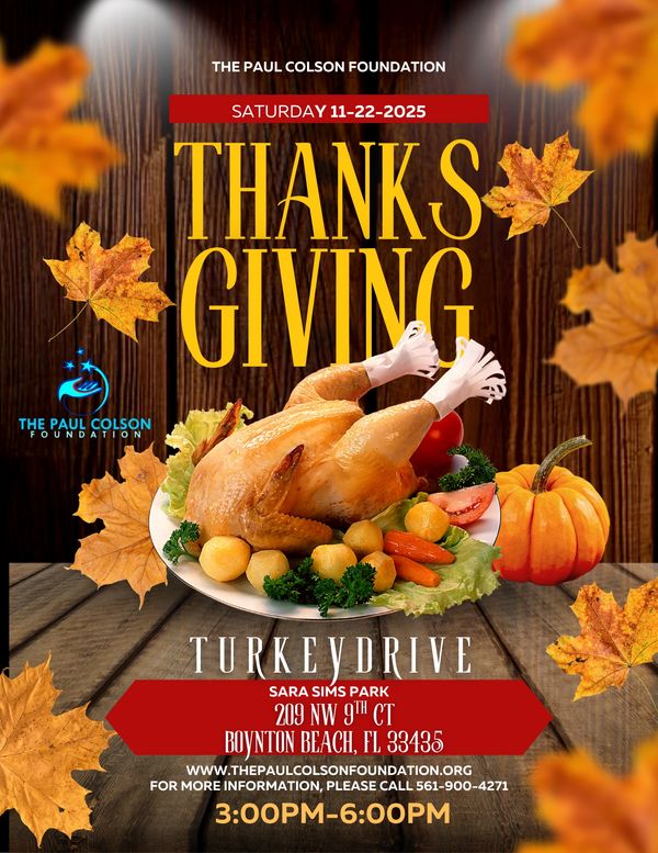 OUR 5TH ANNUAL THANKSGIVING TURKEY DRIVE IN BOYNTON BEACH WHERE WE WILL BE GIVING AWAY 500 FREE TURKEYS TO HELP ALLEVIATE HUNGER FOR THE HOLIDAYS.